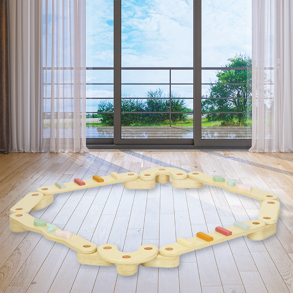 - 8 rails and 6 stones inspire young children to create countless balance beam configurations