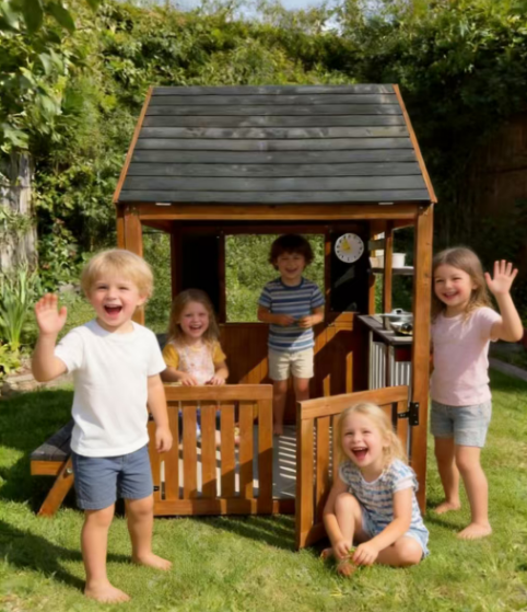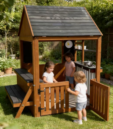 Perfect for kids who love imaginative adventures, this outdoor playhouse provides a fun space where children can play, learn, and connect with nature.