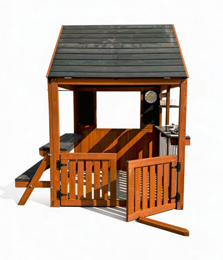 Funphix Cedar Kids Playhouse Kitchen with Picnic Bench
